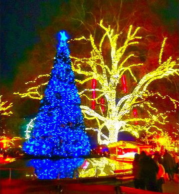 周囲の樹木にはイルミネーションが飾られてとてもきれいです。素晴らしく輝いています。 |
