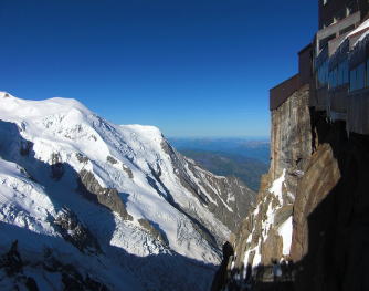 | エレベーターで展望台にあがると、手の届きそうな近さに聳えるモンブランの稜線には、氷河を登る人、 | |