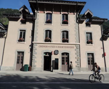 | アルプス最後の見学になりました。急いでシャモニー駅の後ろにある登山電車乗り場へ行きました。 | |