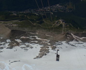 | 到着して、さらにチェアロフトでランデックス2595m上がります。ここからラックブランまでハイキングです。 | |