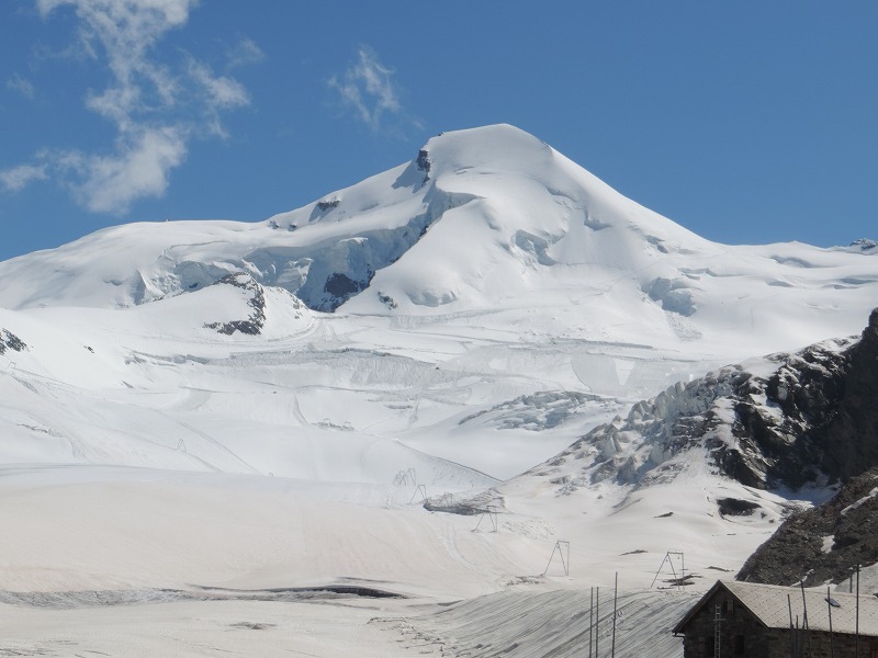 | さらに800m上がったところがホーサース展望台、、眼前にヴァイスミースとトリフト氷河、ミシャベル山群、モンテローザまで | |