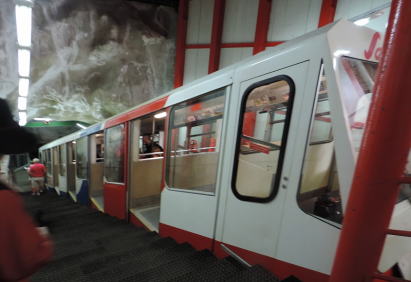 | フェルスキンから、サース谷一の展望台ミッテルアラリンへは、世界一高い所を走る地下鉄といわれるメトロ・アルピーンに乗り | |