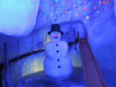 | 体積5000㎡の氷の洞窟があります。氷の彫刻やクレパスを下から覗けるコナーもありました。 | |