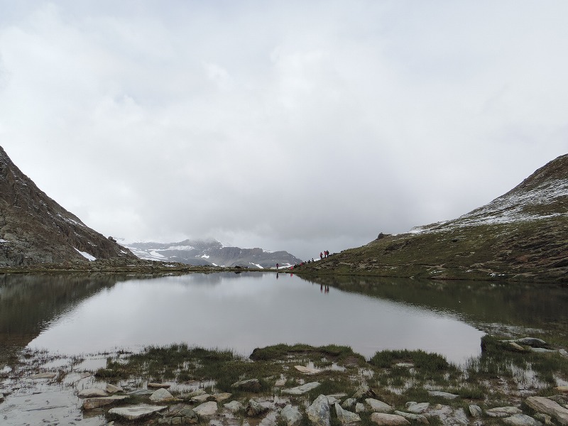 | 雪がチラチラ降っています。ここでは池に写るマッターホルンが素晴しいのですが、霧がかかって周りも見えなくなりました。 | |