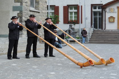 | 教会前広場ではホルンの演奏がありました。記念にパトラシュ犬と一緒に記念撮影をして別れました。 | |