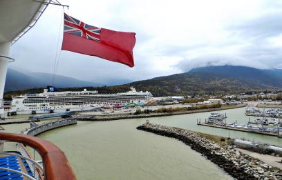 | 下船と日になりました。ウィッターの町に着きました。デッキには大勢の人であふれ返っています。 | ||