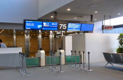 | 他の人たちは早く来たようです。搭乗券のチェツクインは自動受付け機で個人でします。 | ||
