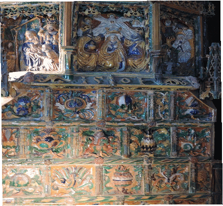 | マヨルカ焼きのタイル製のストーブはとても素晴しく見とれてしまいました。黄金がちりばめられた天井も細かく当時の富を | |