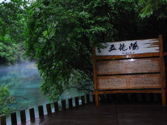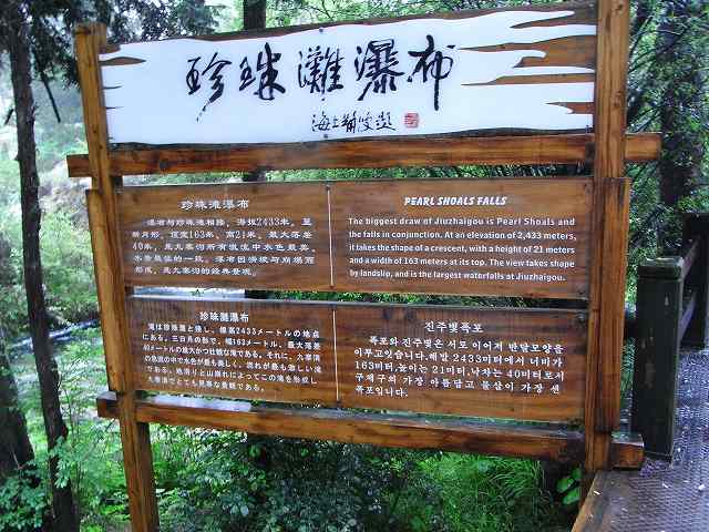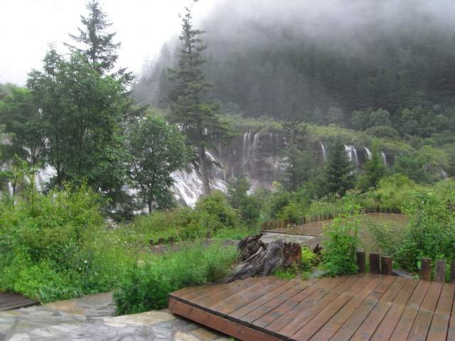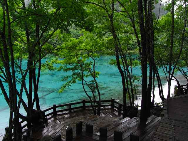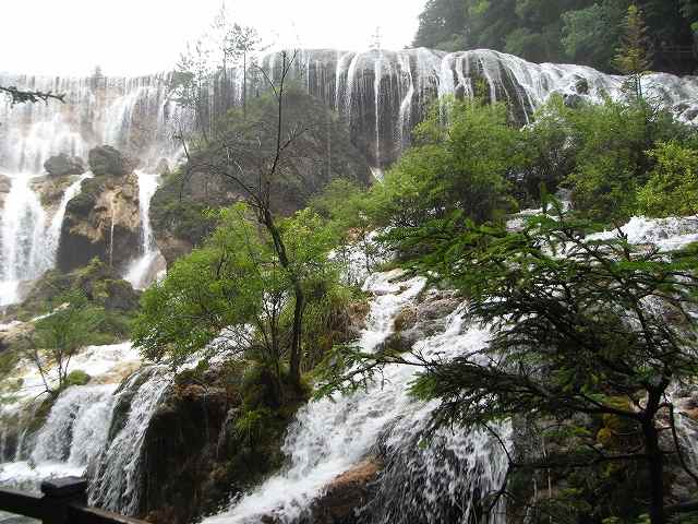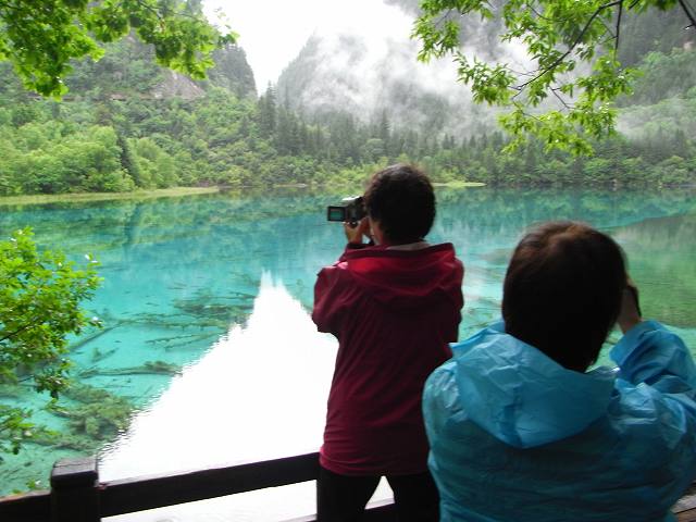 | 楽しみしていた九寨溝の観光です。 ミニバスに乗り入り口に、パスポートを見せての入場 とても厳しい。 朝のうちは霧に包まれて神秘的な湖を見ながら走る。まさに墨絵の世界 渓谷の沿って海子と呼ばれる大小の湖と周囲の自然が織りなす景観。濃い青色をした湖水に私たちは魅了されている。Y字に形成された3つの樹正溝、日則溝、則査窪溝の渓谷に出来ている。 諾日朗瀑布 九寨溝を代表する滝、幅300mを越す中国最大、落差は25m幾重の帯となって流れ落ちる様子は堂々として迫力がある。 鏡海 ちょうど霧がかかっていて鏡のようには映ることができなかったそれでも神秘的な湖が何とも言えないほど美しい。 昨年妹と言ったクロアチアにあるプリトビチェ湖群国立公園を思い出す。炭酸カルシュームを含む石灰岩地層のため透明度が高いのが同じようだ。 その時の感動を思い出す。 五花海 九寨溝の精華と称えられるエメラルドグリーン、マリンブルー、淡緑など様々な色が集まっている。日光の強弱や差込み角度などで、いろいろな色調に変化する。まさに自然の神秘である。 珍珠灘瀑布 幅180m 落差30mあり壮大。落差が大きい分、水が流れ落ちる音も常に大きく周囲に鳴り響いている。青い色の湖面に白い飛沫が流れ込む色の対象が印象的だ |