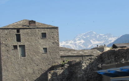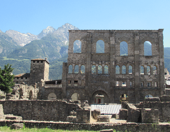 | 4000m級の山々に囲まれたアオスタは歴史的な交差点、古代からフランスやスイスのアルプス越えの交通でした。 | ||