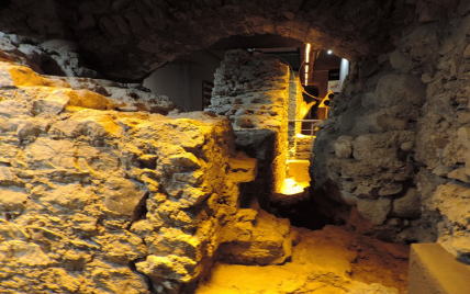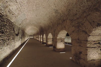 | ローマ時代には聖域を囲んでいた地下回廊 凝灰石のアーチが89m×73m | ||