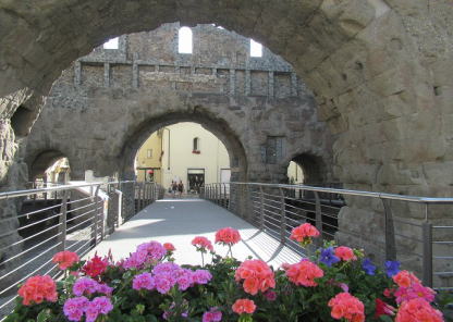 | 山を背景に古代遺跡やローマ遺跡が残り、アルプスのローマと言われる歴史のある街です。 | ||