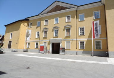 | 考古学博物館 雪を抱いたアルプスの山々が迫る町 | ||