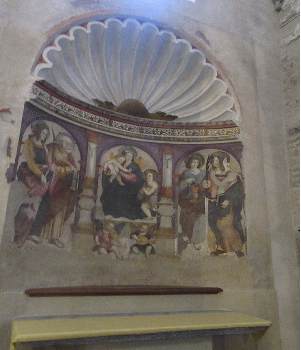 | 11世紀に創建されました。ロマネスク様式の回廊や鐘楼が残されています。 尖頭形のファサードが素朴な教会です | ||