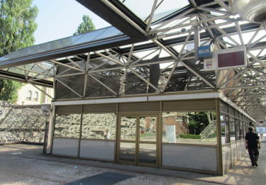 | バス7番線乗り場 乗り換えシャティヨンバス停(建物が円形になっております) チェルヴィニアバス停、教会の前です | ||