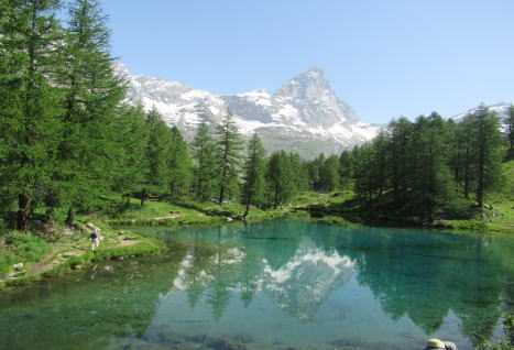 | 思っていたより小さいラーゴ・ブルーです。湖面には山が写しだされています。嬉しいです。きれいに映るラーゴ・ブルー | ||