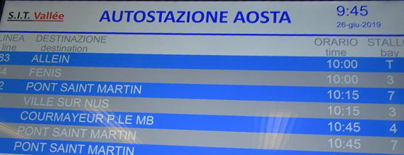 | チェルヴィニアバス停から10;25発~ シャティヨンバス停11;20着 (乗り換え) シャティヨンバス停11;30発 ~アオスタバス停12;05着 | ||