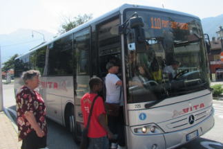 | 主人は昼寝、私は明日早くアオスタに戻りたくて、バス乗り場で時刻を調べて10;25発のバスに乗ることにしました。 | ||