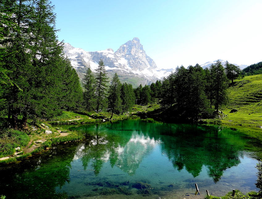 | チェルヴィニアが逆さに写るラーゴ・ブルーに出かけました。素晴らしい天気です。 | ||