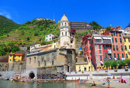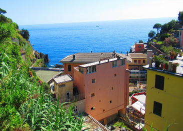 高台から眺めるヴェルナッツァの美しさは1枚の絵のようです。ピンクに彩られた家々が並んでます。カラフルなかわいい家々、 |