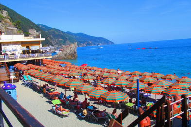 船に乗り雄大な海、周りの綺麗な建物を楽しみながらここまで着きました。チンクエテッレの中では唯一 砂浜の海岸があります。 |