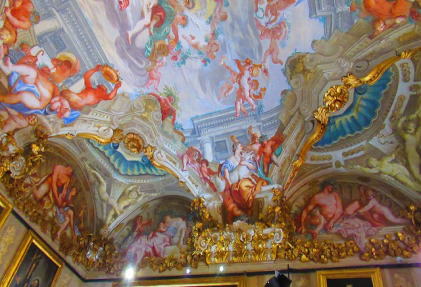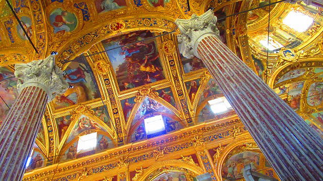 | 赤宮殿 天井に広がるフレスコ画 | ||