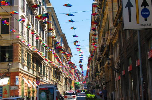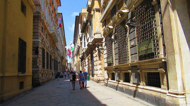 | イタリア最大の湾岸都市ジェノヴァ、財力と権力を持った貴族たちが豪華な邸宅を建てました。その邸宅が両側に建っています。 | ||