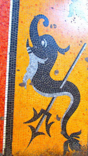 | 歩道にはモザイクが,その上を平然と歩きます。 そのモザイク画がいくつもあります。その上を歩く足がもったいなくて緊張します。 | ||