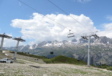 | 6人乗りのゴンドラに乗りプラン・ブラへ 70人乗りのロープウエイに乗り換えて | ||