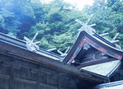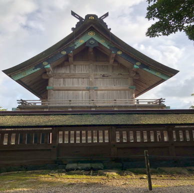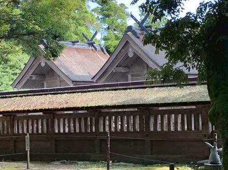 格式が高く、歴史を感じさせる建物が多く、本殿は伊勢神宮と同様の神明造り、勝男木は10本、千木は内そぎになっています。 |