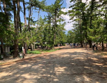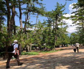 歩いて廻 橋を渡り、大天橋を渡ると松林の天橋立 、全長3,6kmあります。綺麗な松林が続いております。 |
