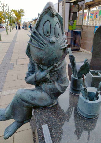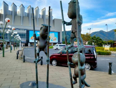 駅前の竹馬に乗る妖怪たち 水木しげるロードの鬼太郎 ねずみ男 |