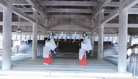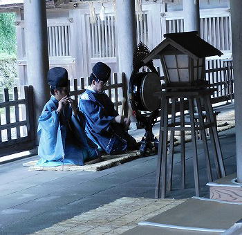 ちょうど本殿で巫女さんが神の舞をしておりました。生で見る舞にはなかなか見られませんので良かったです。 |