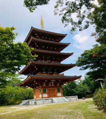 戻りながら、奇怪な話の底なし池のそばに建つ鎌倉時代の形式をそのまま復元した五重塔が素晴らしく綺麗でした。 |