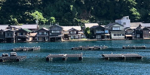日本でもっとも美しい村の一つの(伊根) 。美しい海と豊かな自然、そこで暮らす人々の生活の知恵によって |
