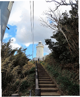| 灯台が見えてきました。房総半島南部で最も西の場所にある灯台であります。 | ||