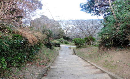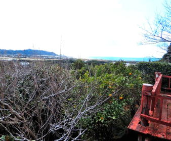 | 広いお庭には日本庭園や茶室があります。小路には梅の花が咲き始めていました。ここから見る館山市内や海が綺麗に見えました。 | ||