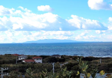 | 海は静かに波を打っています。遠くに大島、そして雲から覗く富士山が見えました。何処から見ても富士山には癒されます。 | ||