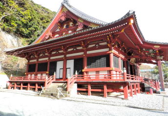 | 船形山の絶壁に飛騨匠の作という舞台造りの観音堂が張りつくように建っています。 | ||