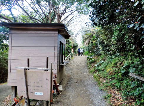 | 細い道を入って行くと灯台の入り口がありました。そこの階段を登って行くと | ||