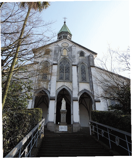 西坂で処刑された二十六聖人に捧げるために、1864年フランス人宣教師により建てられました。日本最古の木造ゴシック様式教会 |