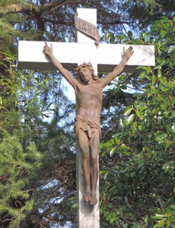祭壇中央の十字架のキリストは1865年フランスの修道院から寄贈されましたが原爆の爆風で大破しました。戦後修復されました。 |