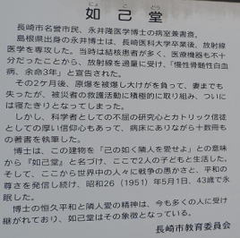 永井隆博士長崎市名誉市民第1号となりました。研究室で長年取り組んでいた放射線の障害を受けて、白血病にかかってしまいました。 |