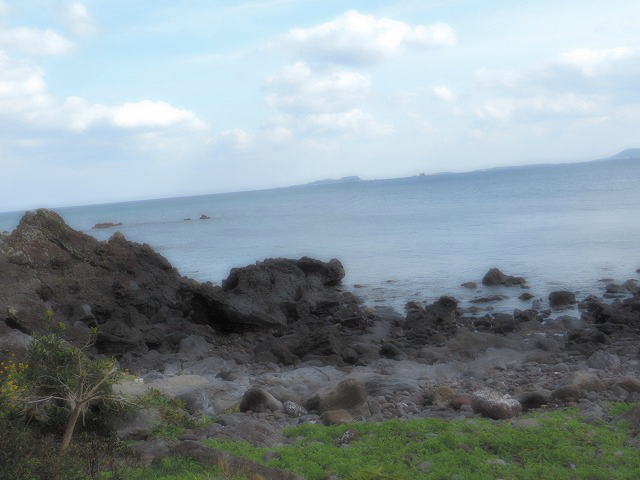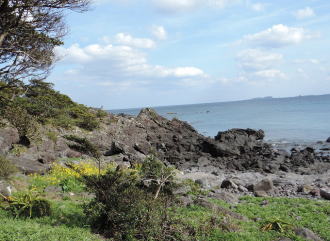 鬼岳火山から流れ出た溶岩が、青く澄みきった海に7Kにわたって流れ込んで、変化に富んだ海岸線をつくっています。 |