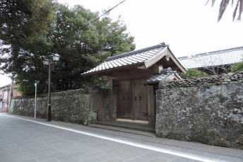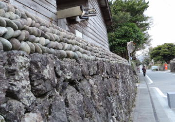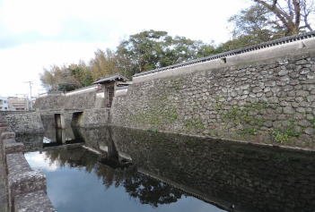 福江城跡近くにあります。石垣掘りは、こぼれ石と称され丸い石を積み重ねて造っております。 |