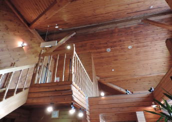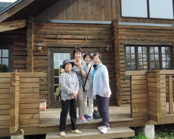 最後の宿泊地大沼公園に着きました。湖畔に面したログハウスのリゾートホテル、グランヴィッレッジ大沼です。 |