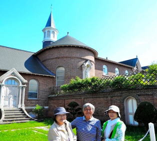 現役のころ仕事の関係で、教会の事をよく知っている、近所に住んでいるおばさんが話がしたくてここで案内をしてくれています。 |