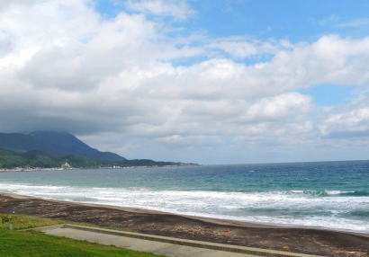 海岸線を走っていると道の駅がありました。展望台から海を見ますと綺麗な波がたっていました。ここは遠い恵山まで来られたのです。 |