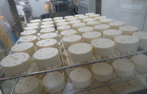 | 入りますとチーズの製造室や熟成庫をガラス越しに見学できます。 | ||