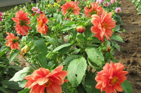 | ペネチア、サルビアなど30種類もの花々が咲き誇っています。広大な花畑、そして遠くに見える山々 | ||